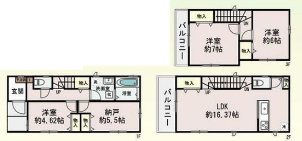 | 間取り | 3LDK+S(納戸) | 建物構造 | 木造 地上3階建て |