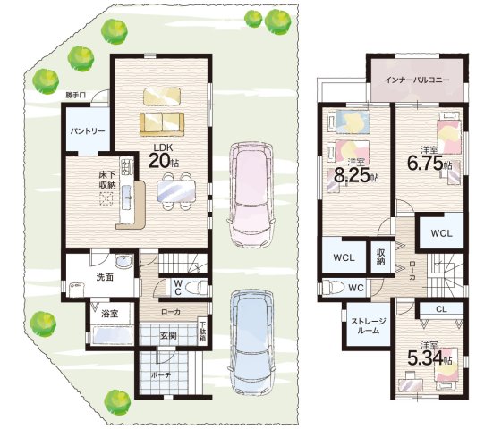 - ※完成予想図やCG合成画像は、門塀・植栽・庭・外観等、実際とは多少異なる場合があります。
