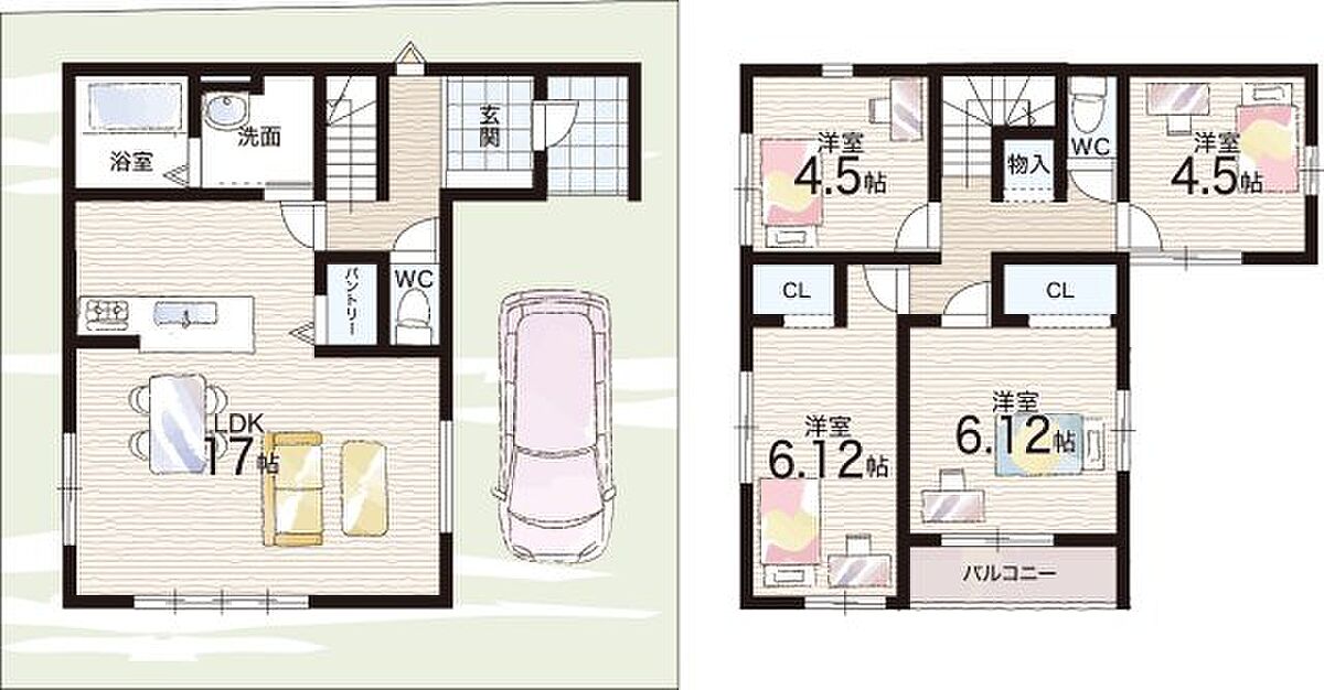 - ※完成予想図やCG合成画像は、門塀・植栽・庭・外観等、実際とは多少異なる場合があります。