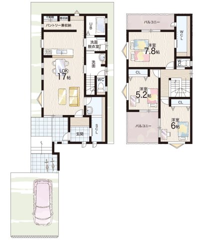 1区画 間取り 3LDK+S(納戸) 価格 3280万円 建物面積 102.45m2 土地面積 117.38m2