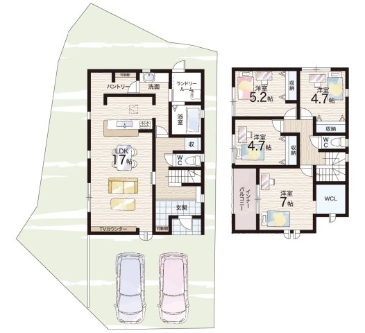 - ※完成予想図やCG合成画像は、門塀・植栽・庭・外観等、実際とは多少異なる場合があります。