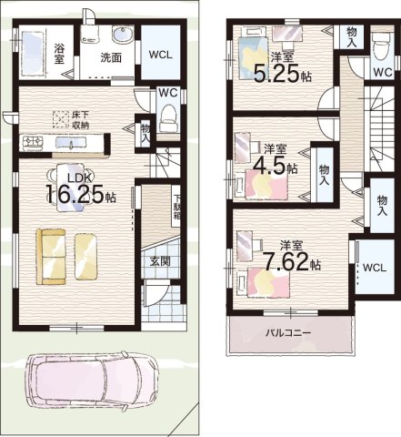 - ※完成予想図やCG合成画像は、門塀・植栽・庭・外観等、実際とは多少異なる場合があります。