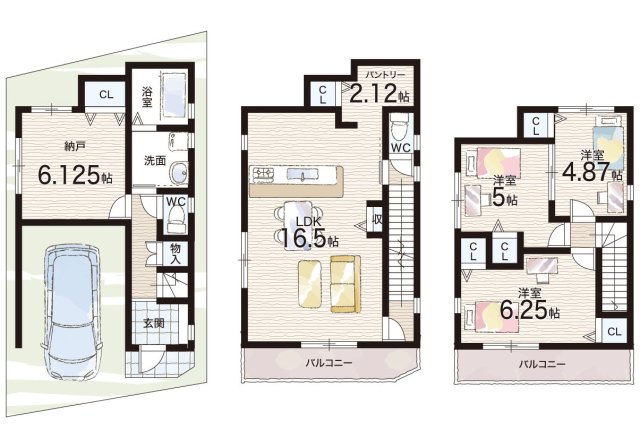 | 間取り | 3LDK+S(納戸) | 建物構造 | 木造 地上3階建て |