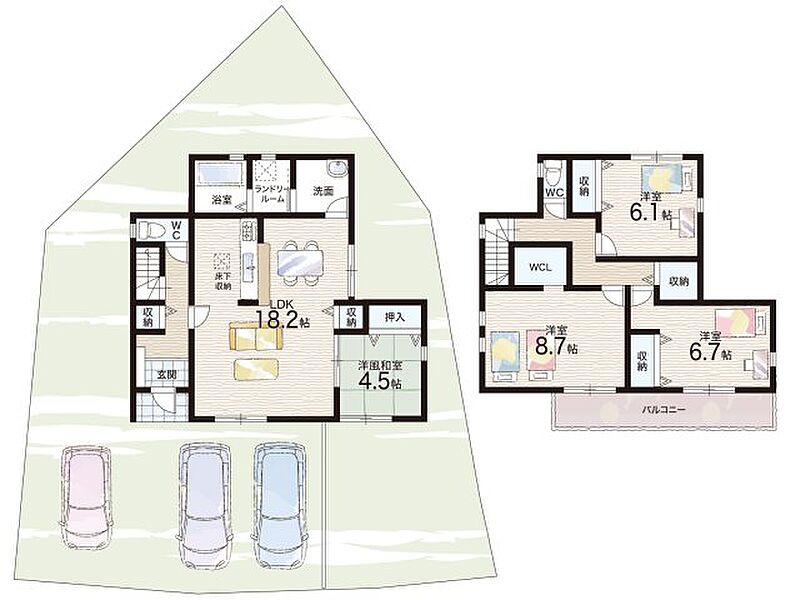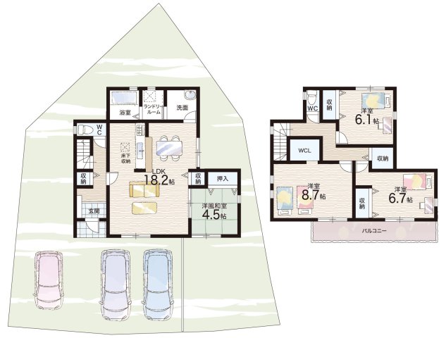- ※完成予想図やCG合成画像は、門塀・植栽・庭・外観等、実際とは多少異なる場合があります。