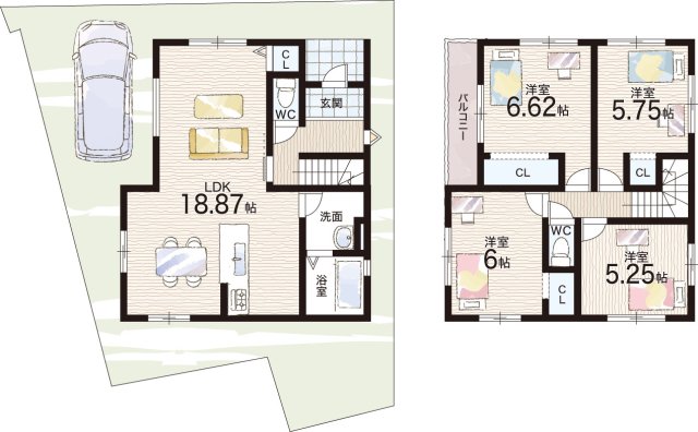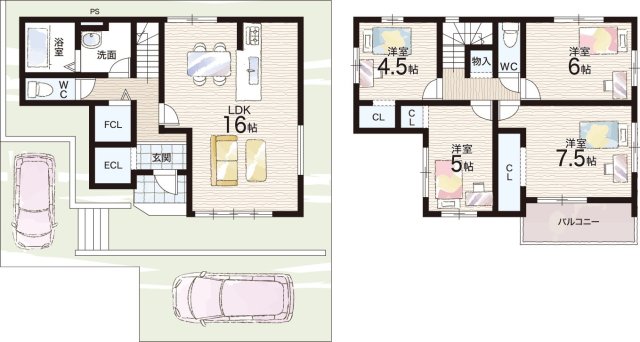 - ※完成予想図やCG合成画像は、門塀・植栽・庭・外観等、実際とは多少異なる場合があります。