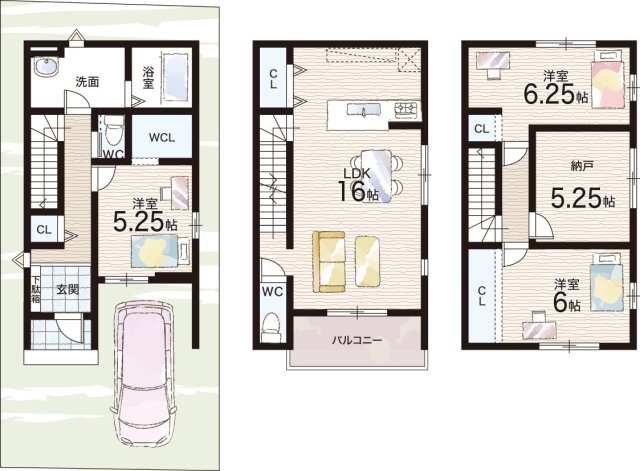 | 間取り | 3LDK+S(納戸) | 建物構造 | 木造 地上3階建て |