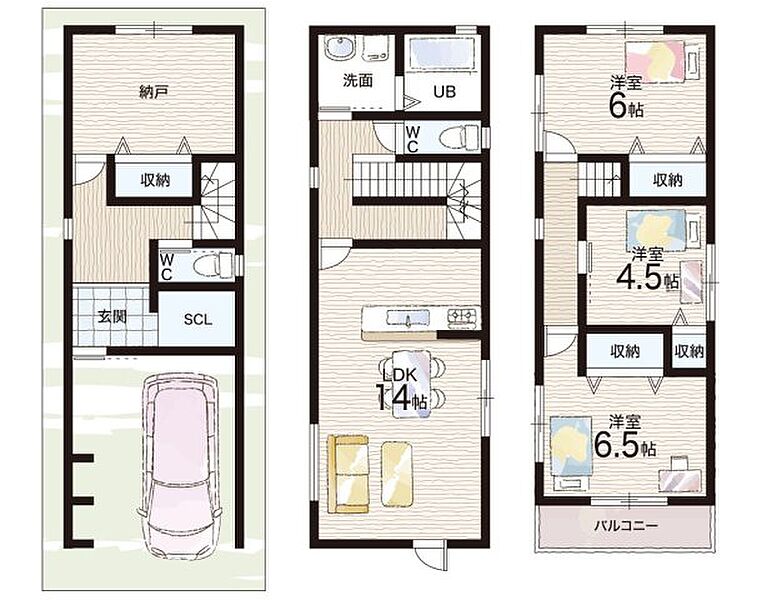 | 間取り | 3LDK+S(納戸) | 建物構造 | 木造 地上3階建て |
