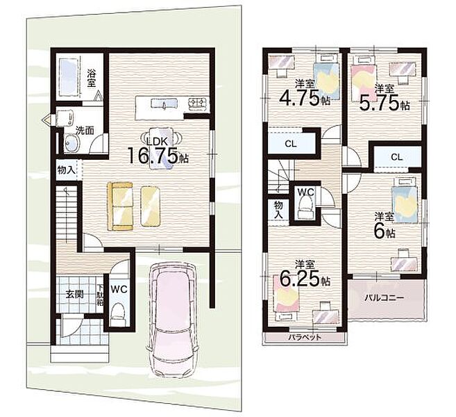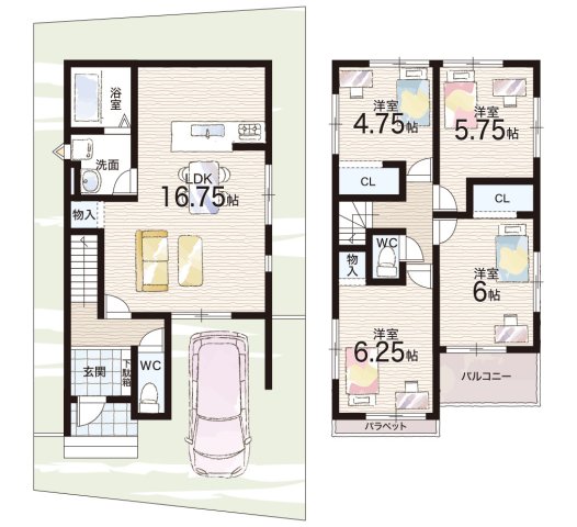 - ※完成予想図やCG合成画像は、門塀・植栽・庭・外観等、実際とは多少異なる場合があります。