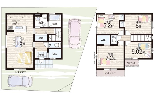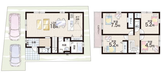 - ※完成予想図やCG合成画像は、門塀・植栽・庭・外観等、実際とは多少異なる場合があります。