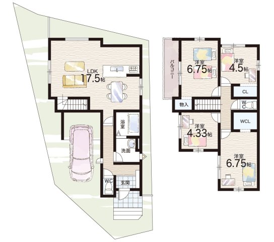 - ※完成予想図やCG合成画像は、門塀・植栽・庭・外観等、実際とは多少異なる場合があります。