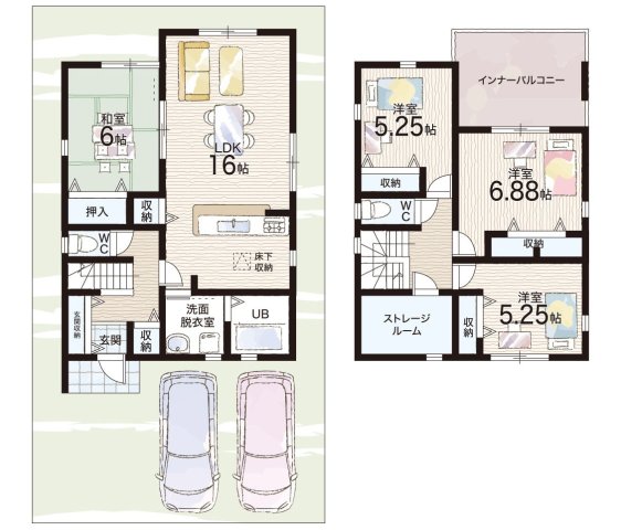 - ※完成予想図やCG合成画像は、門塀・植栽・庭・外観等、実際とは多少異なる場合があります。