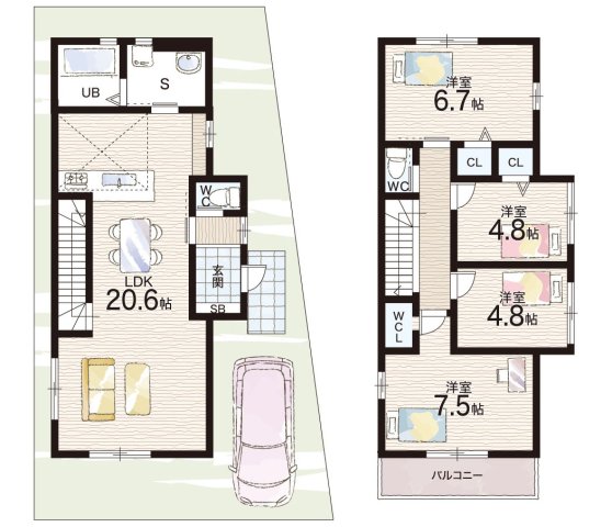 - ※完成予想図やCG合成画像は、門塀・植栽・庭・外観等、実際とは多少異なる場合があります。