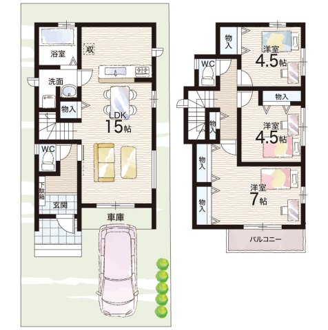 - ※完成予想図やCG合成画像は、門塀・植栽・庭・外観等、実際とは多少異なる場合があります。