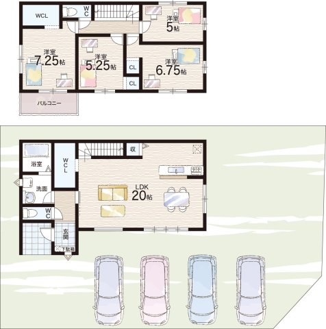 - ※完成予想図やCG合成画像は、門塀・植栽・庭・外観等、実際とは多少異なる場合があります。
