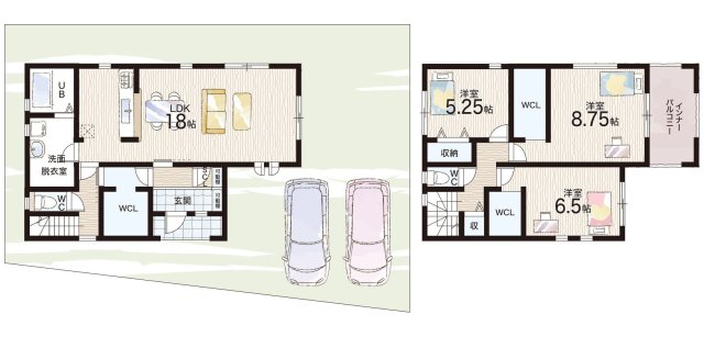 - ※完成予想図やCG合成画像は、門塀・植栽・庭・外観等、実際とは多少異なる場合があります。