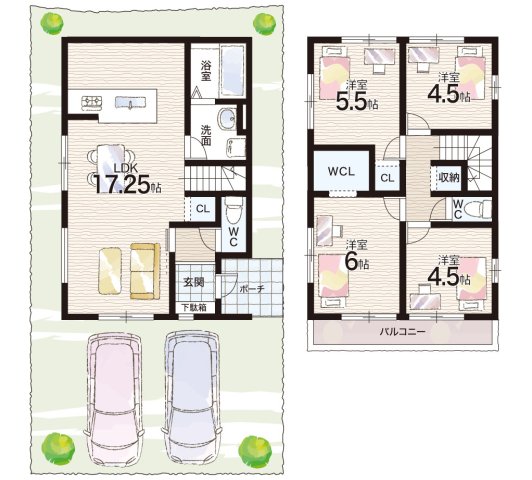 - ※完成予想図やCG合成画像は、門塀・植栽・庭・外観等、実際とは多少異なる場合があります。