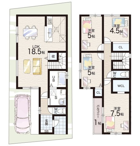 - ※完成予想図やCG合成画像は、門塀・植栽・庭・外観等、実際とは多少異なる場合があります。