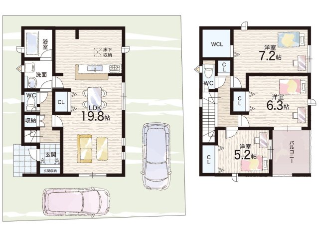 - ※完成予想図やCG合成画像は、門塀・植栽・庭・外観等、実際とは多少異なる場合があります。