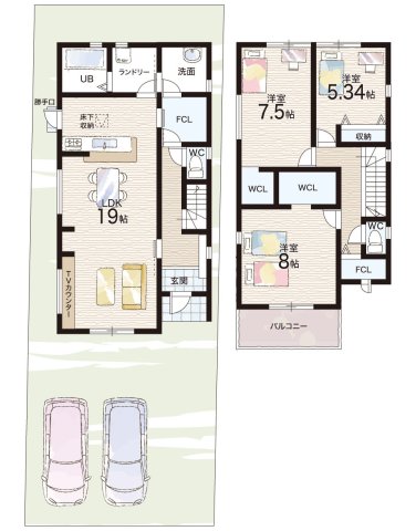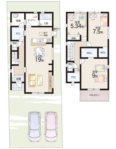 - ※完成予想図やCG合成画像は、門塀・植栽・庭・外観等、実際とは多少異なる場合があります。