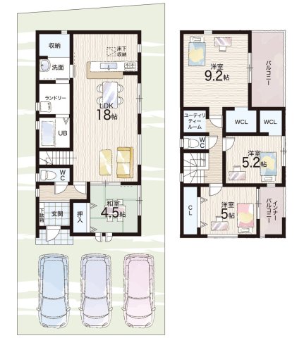 | 建物面積 | 110.96m2~118.41m2 | 土地面積 | 158.40m2~158.50m2 |