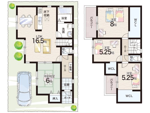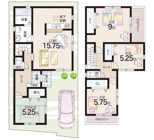 - ※完成予想図やCG合成画像は、門塀・植栽・庭・外観等、実際とは多少異なる場合があります。