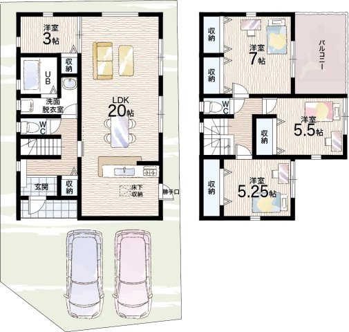 - ※完成予想図やCG合成画像は、門塀・植栽・庭・外観等、実際とは多少異なる場合があります。