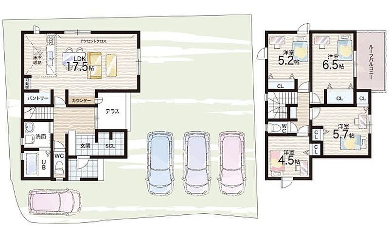 - ※完成予想図やCG合成画像は、門塀・植栽・庭・外観等、実際とは多少異なる場合があります。