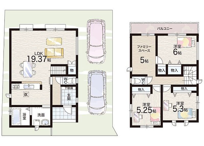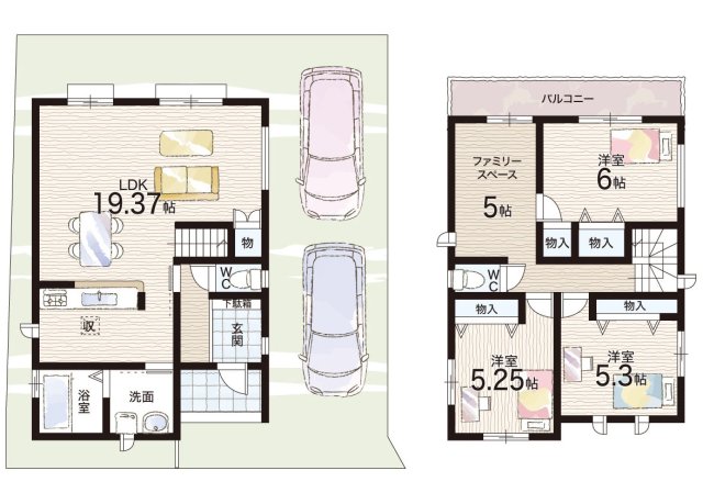 - ※完成予想図やCG合成画像は、門塀・植栽・庭・外観等、実際とは多少異なる場合があります。