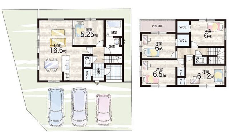 - ※完成予想図やCG合成画像は、門塀・植栽・庭・外観等、実際とは多少異なる場合があります。