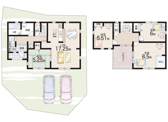- ※完成予想図やCG合成画像は、門塀・植栽・庭・外観等、実際とは多少異なる場合があります。