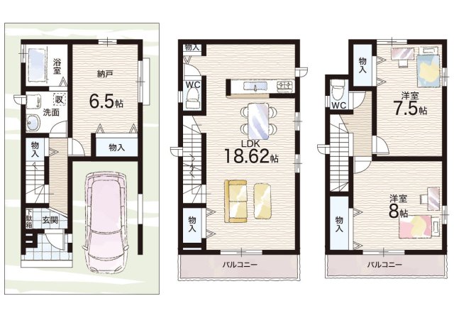 | 間取り | 2LDK+S(納戸) | 建物構造 | 木造 地上3階建て |