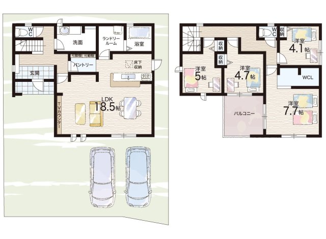 - ※完成予想図やCG合成画像は、門塀・植栽・庭・外観等、実際とは多少異なる場合があります。