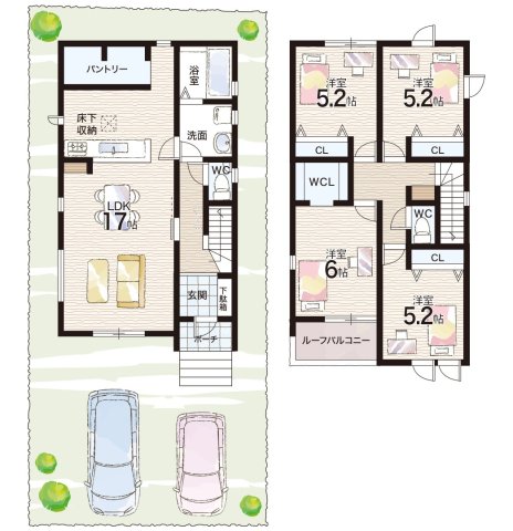 - ※完成予想図やCG合成画像は、門塀・植栽・庭・外観等、実際とは多少異なる場合があります。