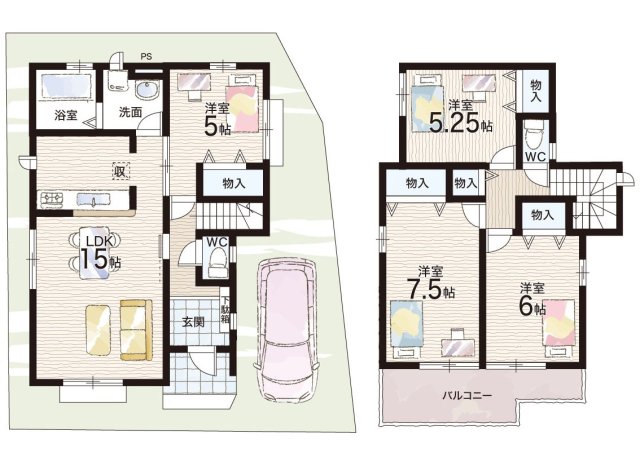 - ※完成予想図やCG合成画像は、門塀・植栽・庭・外観等、実際とは多少異なる場合があります。