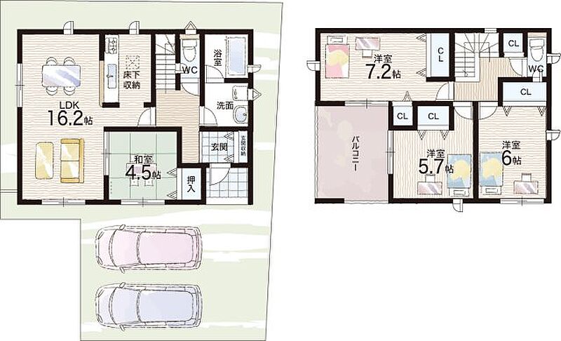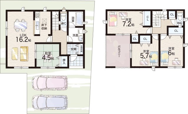 - ※完成予想図やCG合成画像は、門塀・植栽・庭・外観等、実際とは多少異なる場合があります。