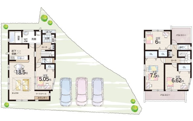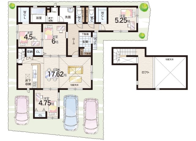 - ※完成予想図やCG合成画像は、門塀・植栽・庭・外観等、実際とは多少異なる場合があります。