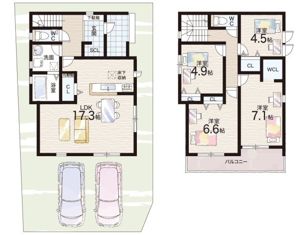- ※完成予想図やCG合成画像は、門塀・植栽・庭・外観等、実際とは多少異なる場合があります。