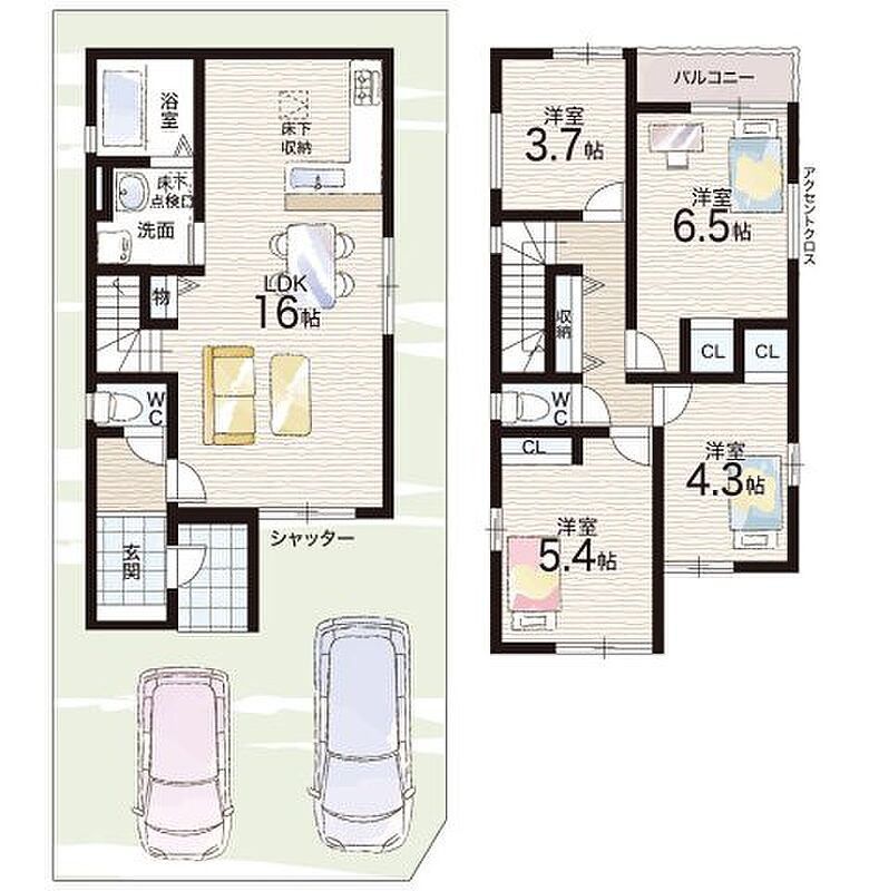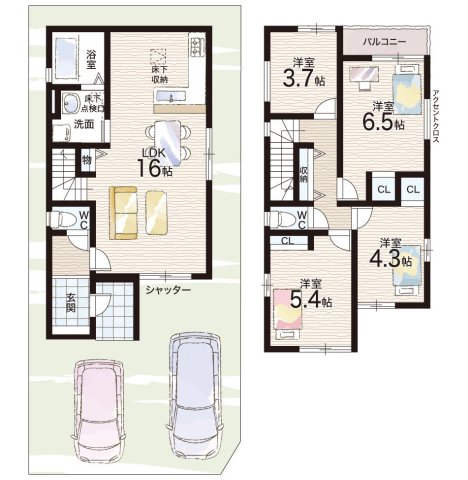 - ※完成予想図やCG合成画像は、門塀・植栽・庭・外観等、実際とは多少異なる場合があります。