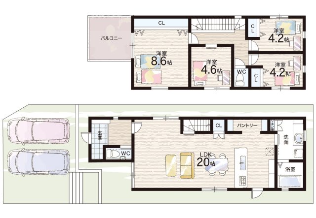 - ※完成予想図やCG合成画像は、門塀・植栽・庭・外観等、実際とは多少異なる場合があります。