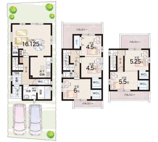- ※完成予想図やCG合成画像は、門塀・植栽・庭・外観等、実際とは多少異なる場合があります。