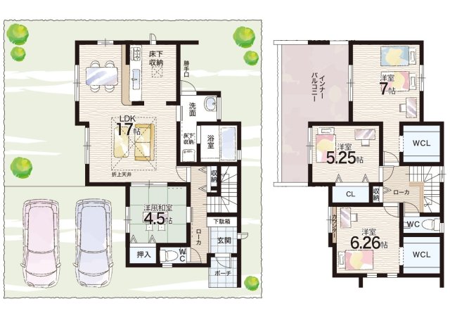 - ※完成予想図やCG合成画像は、門塀・植栽・庭・外観等、実際とは多少異なる場合があります。