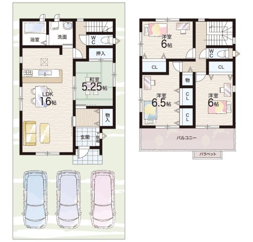| 駐車場 | 3台 | 道路の幅員 | 南側6.3m公道 |