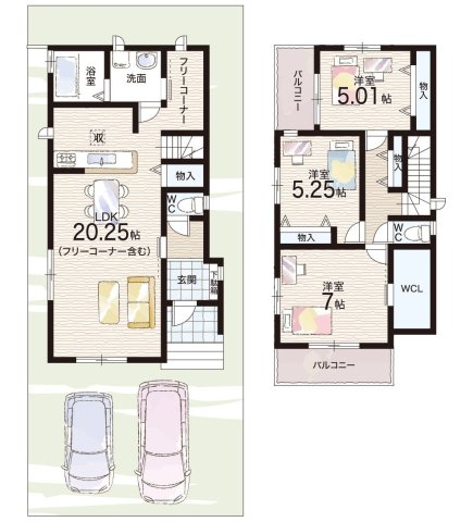 | 建物面積 | 85.28m2~91.90m2 | 土地面積 | 115.00m2~126.31m2 |