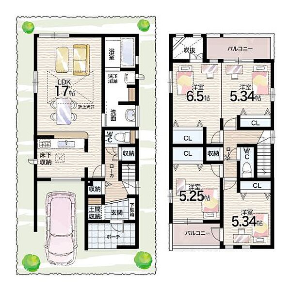 - ※完成予想図やCG合成画像は、門塀・植栽・庭・外観等、実際とは多少異なる場合があります。