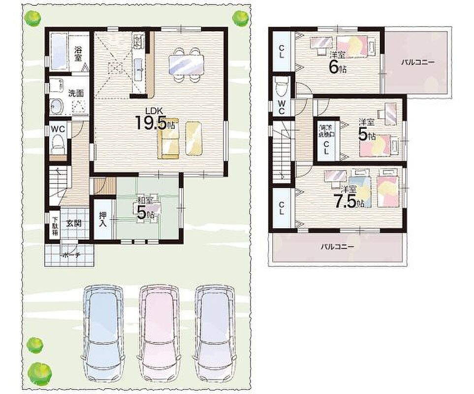 | 駐車場 | 3台 | 道路の幅員 | 南側6.0m公道 |