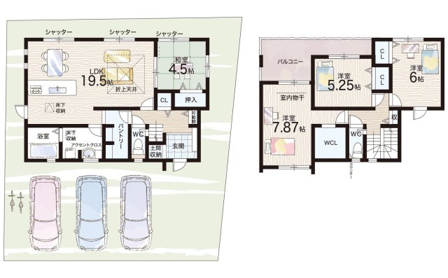 - ※完成予想図やCG合成画像は、門塀・植栽・庭・外観等、実際とは多少異なる場合があります。