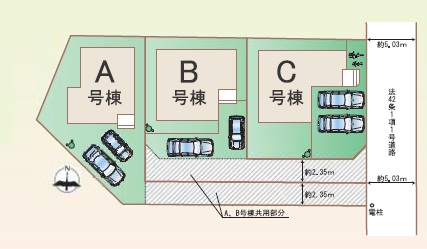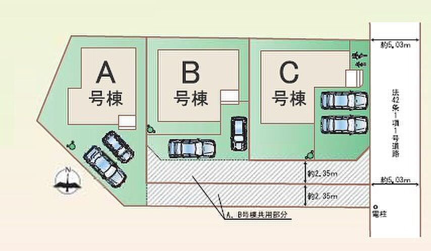 | 駐車場 | 2台 | 道路の幅員 | 東側5.0m公道 |