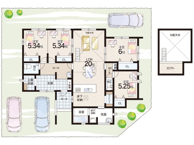 - ※完成予想図やCG合成画像は、門塀・植栽・庭・外観等、実際とは多少異なる場合があります。
