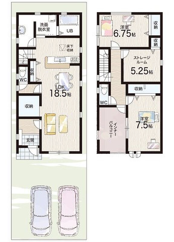 2号地 間取り 2LDK+S(納戸) 価格 4790万円 建物面積 108.47m2 土地面積 118.79m2
