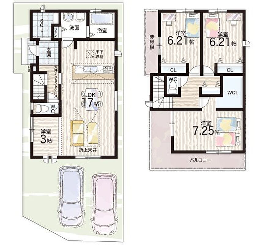 - ※完成予想図やCG合成画像は、門塀・植栽・庭・外観等、実際とは多少異なる場合があります。